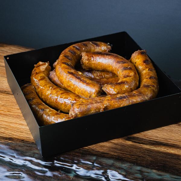 Your choice of hot or sweet sausage. Comes with a salad and pasta.
