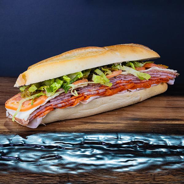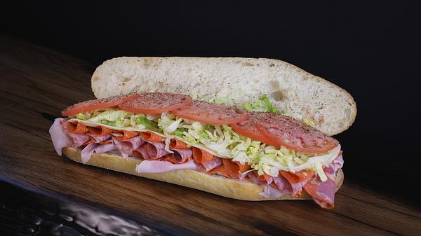 Ham, pepperoni, Genoa salami, hot capicola, picante provolone, lettuce, tomatoes, oil and vinegar, and roasted red peppers.