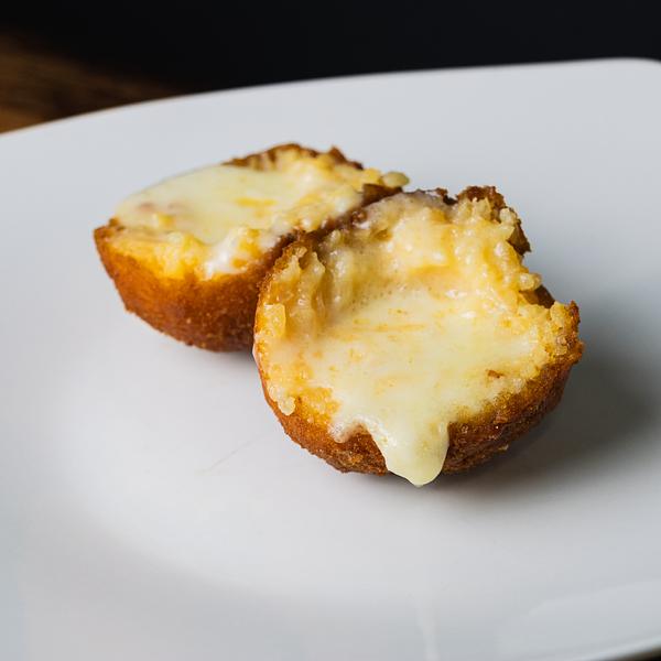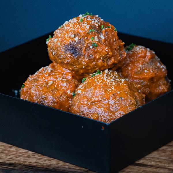Housemade meatballs in marinara sauce, melted picante provolone, and mozzarella. Topped with raw white onions and parmigiano cheese.