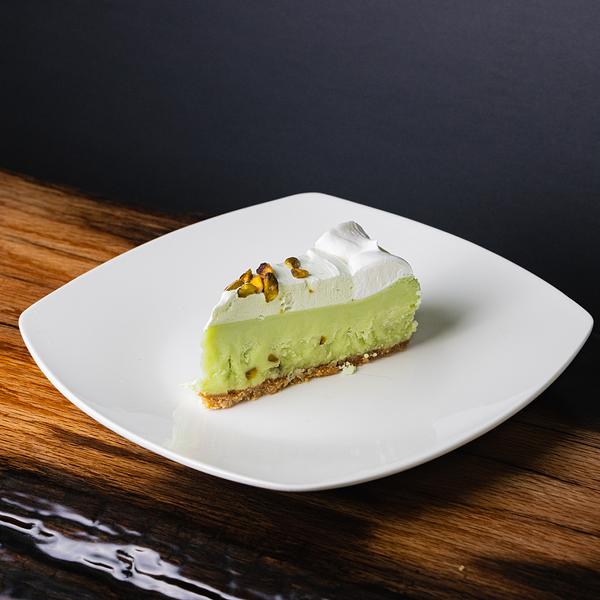 Creamy, velvety cheesecake infused with rich Sicilian pistachios on a delicate cookie crust. A smooth, nutty twist on a classic dessert.